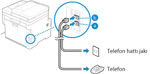 ) bağlayın.Faks işlevi içeren bir telefon bağlarken, telefondaki faksı otomatik alma ayarını devre dışı bıraktığınızdan emin olun.