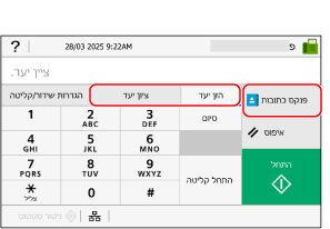 לביצוע שיחת טלפון, הזן את מספר הפקס באמצעות מקשי הספרות או בחר יעד רשום.