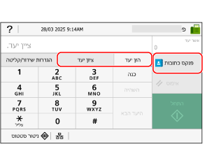 הזן את מספר הפקס באמצעות מקשי הספרות או בחר יעד רשום.