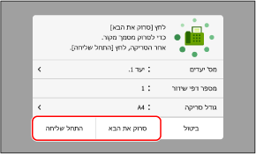 בסיום הסריקה של כל המסמכים, לחץ על [התחל שליחה] או על [תצ' מק' ושליחה].