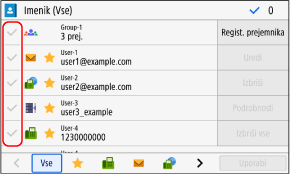Če je prejemnik v imeniku določen z možnostjo »Priljubljene nastavitve«, je tudi postopek urejanja ali brisanja uporabljen za način »Priljubljene nastavitve«. Registracija in priklic priljubljenih nastavitev