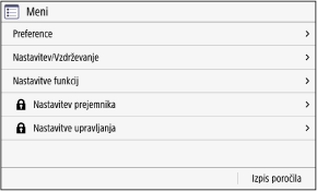 Spreminjanje prikaza na zaslonuPrikaz na nadzorni plošči lahko spremenite na primer tako, da spremenite jezik in enote uporabniškega vmesnika ter prikažete ali skrijete sporočila. [Nastavitve prikaza]