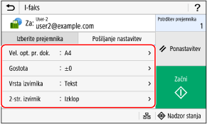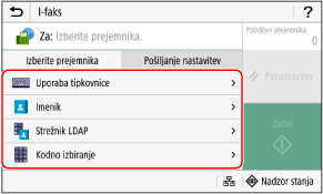 Če je prejemnik pri pošiljanju omejen zaradi nastavitev za overovitev za funkcijo pošiljanja, ne morete določiti drugega prejemnika. Za podrobnosti se obrnite na skrbnika.