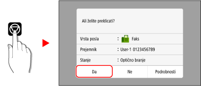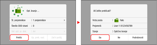 Pošiljanje faksa lahko prekličete tako, da upoštevate navodila na zaslonu.