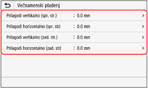 Primer: Ko prilagajate položaj tiskanja sprednje strani papirja v navpični smeri,
