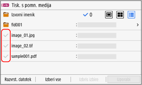 * Hkrati ne more izbrati datotek PDF in slikovnih datotek (datotek JPEG ali TIFF).