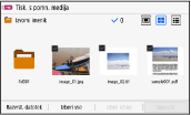 V napravo vstavite pomnilniško napravo USB, nato pa na zaslonu [Domov] pritisnite [Tiskanje s pomn. medija], da prikažete datoteke in mape v pomnilniški napravi USB.