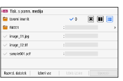 Če želite izbrati vse prikazane datoteke, pritisnite [Izberi vse] na dnu zaslona. Če so na voljo tako datoteke PDF kot tudi slikovne datoteke (datoteke JPEG ali TIFF), je prikazan zaslon za izbiro vrste datoteke. Na tem zaslonu izberite vrsto datoteke, ki jo želite natisniti.