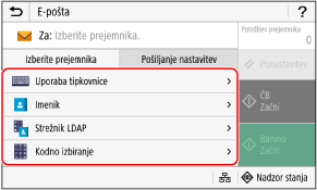 Če je prejemnik pri pošiljanju omejen zaradi nastavitev za overovitev za funkcijo pošiljanja, ne morete določiti drugega prejemnika. Za podrobnosti se obrnite na skrbnika.
