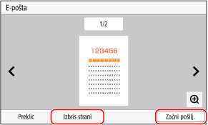Če nekaterih strani ne želite poslati, odprite stran in pritisnite [Izbris strani].