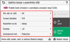 Ta nastavitev omogoča shranjevanje optično prebranih podatkov v pomnilniško napravo USB. Priprava na shranjevanje optično prebranih podatkov v pomnilniško napravo USB
