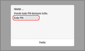 Ko je prikazan ta zaslon, morate registrirati način WPS s kodo PIN za usmerjevalnik za brezžični LAN v roku 10 minut.