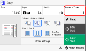 Press [Number of Copies], use the numeric keys to enter the number of copies, and then press [Close].
