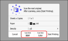 You can select the color mode (Black & White or Color) for each passport. To copy the next passport in black and white, press [Scan Next B&W]. To copy in color, press [Scan Next Color].