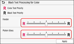 In [Feeder] or [Platen Glass], perform adjustment with priority given to reproducing either color text or black text.
