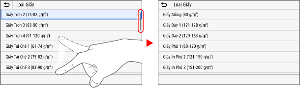 Di chuyển đầu ngón tay trong khi chạm vào màn hình, và thả ra ở vị trí mong muốn. Bạn có thể cuộn danh sách và di chuyển vùng đang chạm đến vị trí mong muốn.