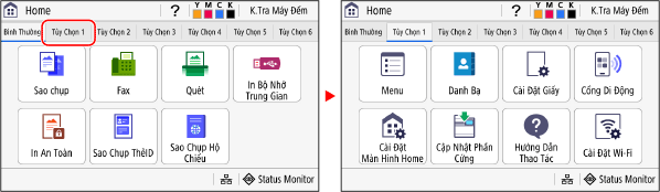 Chạm vào màn hình và vuốt bằng đầu ngón tay của bạn. Màn hình di chuyển theo hướng bạn vuốt ngón tay. Ví dụ: màn hình [Home] di chuyển đến thẻ theo hướng bạn vuốt ngón tay.