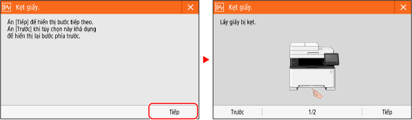 Thông báo được hiển thị trên màn hình khi xảy ra lỗi và máy hết giấy hoặc mực trong hộp mực.