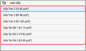 Khi giấy được nạp theo hướng ngang, chọn [A5]. Khi giấy được nạp theo hướng dọc, chọn [A5R].