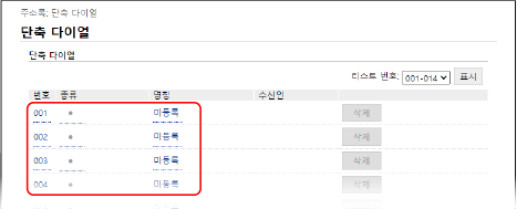 컴퓨터에서 리모트 UI를 사용하여 여러 대상이 포함된 그룹을 주소록에 등록할 수 있습니다.