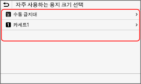 [자주 사용하는 용지 크기 선택] 화면이 표시됩니다.