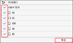 확인란 선택이 취소된 용지 크기는 용지 설정 화면에 표시되지 않습니다.