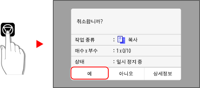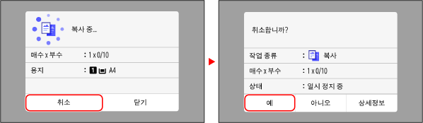화면의 지침에 따라 복사 작업을 취소합니다.