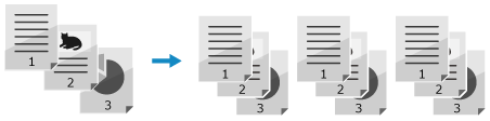 예를 들어 3페이지 원고를 세 부 복사하는 경우 인쇄물은 1, 2, 3, 1, 2, 3, 1, 2, 3 순서로 정렬됩니다.