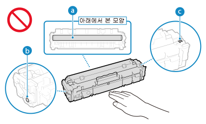 토너 카트리지 하단의 드럼 표면을 만지지 않도록 주의하십시오.