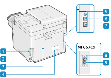 LAN 포트에 연결된 상용 이더넷 케이블을 사용하여 기기를 유선 LAN에 연결할 수 있습니다.