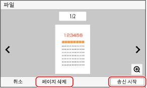 전송하고 싶지 않은 페이지가 있는 경우, 페이지를 열고 [페이지 삭제]를 누릅니다.