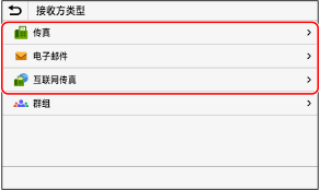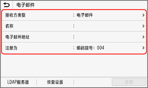 可以使用操作面板将目的地注册到地址簿。 可使用以下方法注册电子邮件地址(电子邮件、I-Fax)和传真号码: 通过直接输入目的地的信息来注册目的地。