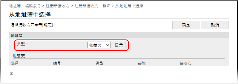 在 [类型] 中,选择 [收藏夹] 或 [编码拨号],然后单击 [显示] 更改地址簿的显示。