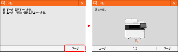 当发生错误和机器缺纸或一体式鼓粉盒缺少墨粉时,屏幕上就会显示消息。