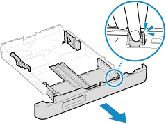 在按下锁定释放杆的同时,将纸张导板移至凸出部分与合适的纸张尺寸标记对齐。