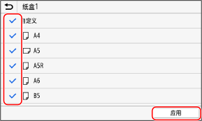 清除要隐藏的纸张尺寸的复选框,然后单击 [应用]。