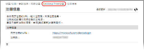 单击远程用户界面屏幕顶部的 [Universal Print设置]。