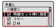 チェックマークを外した用紙サイズは、用紙設定時の画面に表示されなくなります。