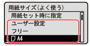 を押し、表示された一覧から用紙サイズを選択します。