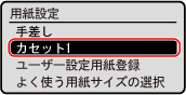 初期設定では、給紙カセットの用紙サイズと用紙種類は、A4サイズの普通紙1に設定されています。サイズや種類が異なる用紙をセットした場合は、用紙設定を変更します。