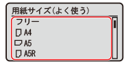 [フリー]に設定しておくと、セットする用紙をひんぱんに変更する場合に、設定を変更する手間が省けます。プリンタードライバー側で設定した用紙サイズと、セットされている用紙のサイズが大きく異なる場合にエラーメッセージを表示させることもできます。