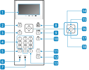 各機能を操作する画面や使用状況、メッセージなどが表示されます。