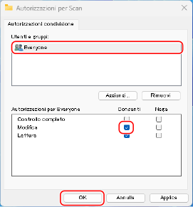 1 | In [Utenti e gruppi], selezionare [Everyone]. |