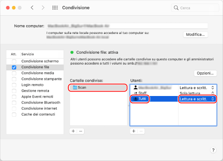2 | In [Utenti], selezionare [Tutti]  [Lettura e scritt.]. |