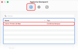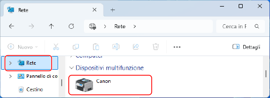 In [Rete], selezionare il server di stampa per visualizzare la stampante condivisa.