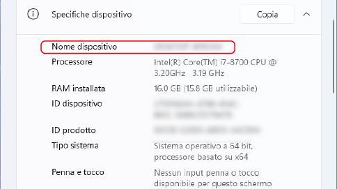 Il nome del computer viene visualizzato in [Nome dispositivo].
