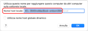 Il nome visualizzato in [Nome computer] nella schermata [Condivisione] potrebbe non essere utilizzabile sulla rete. Procedere come indicato di seguito per visualizzare il nome del computer utilizzato sulla rete.