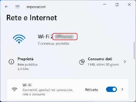 Visualizza la stringa tra parentesi ( ) del Wi-Fi.