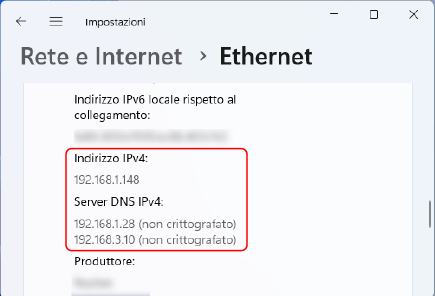 2 | In [Proprietà], visualizzare l’indirizzo IP e il server DNS. |