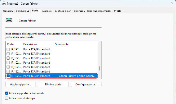 Nella scheda [Porte], verificare che la casella di controllo [Attiva supporto bidirezionale] sia selezionata.